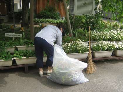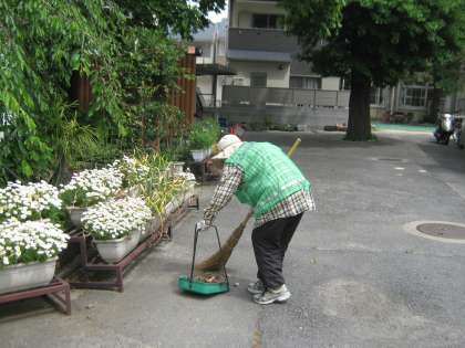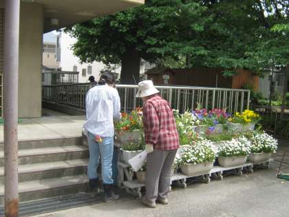 花ボランティアの方々が真心込めてお花の手入れや落ち葉を掃いてくださっています。おかげで音羽小学校は花いっぱいの学校です。
