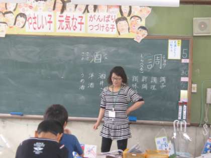 1組は,新出漢字の学習をしました。「酒」という漢字から思いつく言葉を出し合いました。2組は,教科書の「よい聞き手になろう」の学習をしました。よい聞き方,よい話し方について考えていきました。