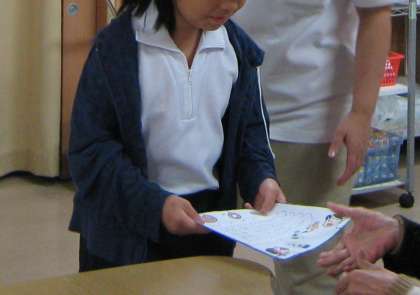 地域のお年寄りに運動会の招待状を届けに行ってきました。