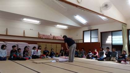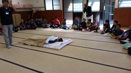みさきの家の先生に,寝るときに使うシーツ・毛布・布団の敷き方やたたみ方を教わりました。