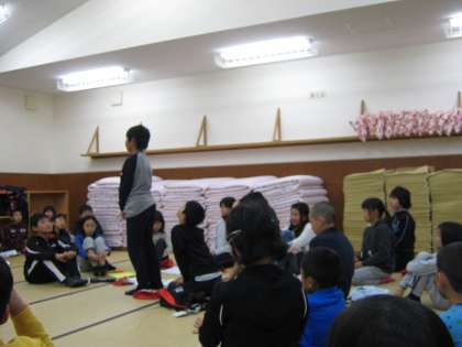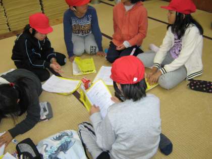 各班で,今日一日のふり返りを行い,今日のがんばりと明日のめあてを報告しました。