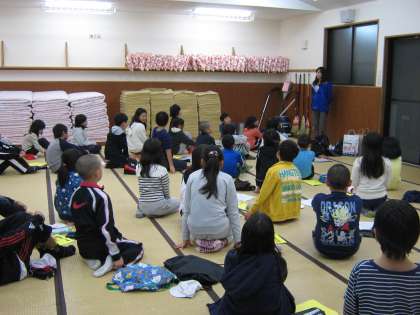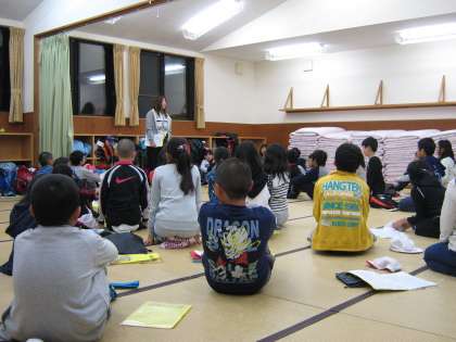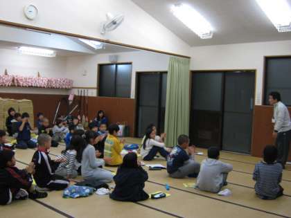 みんな背筋をのばして真剣にお話を聞いています。全員元気に,今日一日の活動をすべて終えることができました。
