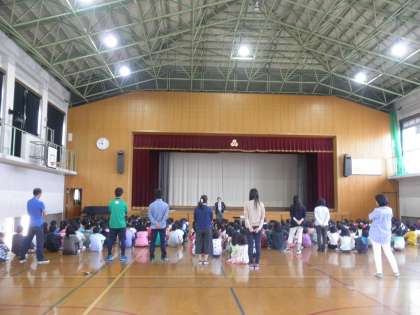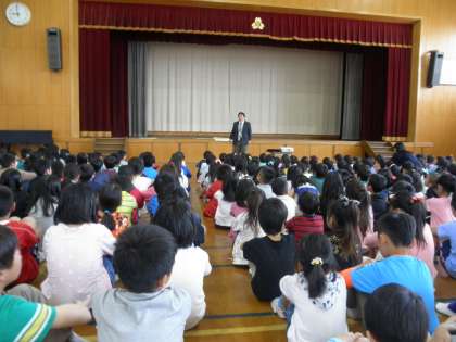 まず始めに,校長先生から,きまりを守ることの大切さについてお話がありました。