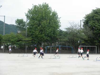 6年生が,運動場で体育科『ハードル走』を行っていました。ハードルからハードルまでをリズミカルに,そしてハードルを低い姿勢で走り越す姿が見られました。