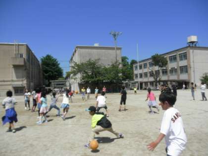 ひさしぶりに晴れました!運動場では子どもたちがボール遊びをしたり,走ったり,楽しそうに過ごしていました。