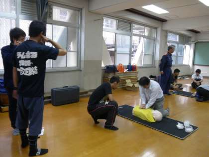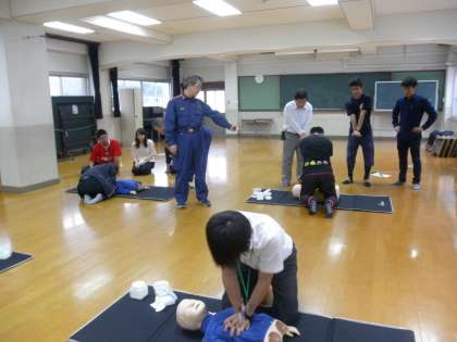 心肺蘇生法やAEDの使用方法について講習を受けました。
