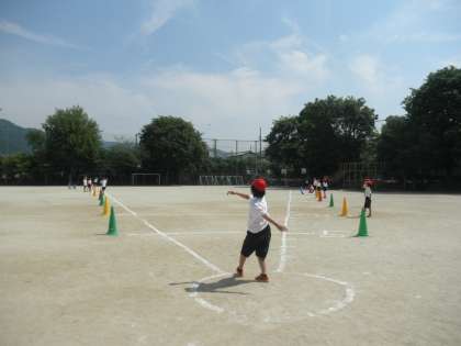 今日,5年生の体力テストを実施しました。運動場でハンドボール投げを測定している様子です。体育館では,握力・上体起こし・長座体前くつ・立ちはばとびを実施しました。