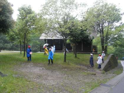 雨も小降りになったので,みんなが楽しみにしていたフライングディスクゴルフをしました。これから,入浴して,夕食のバイキングです。