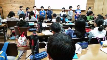 第4研修室でのふりかえりです。活動を通して学んだこと,体験して思ったこととして,命の大切さ・人に感謝する気持ち・声をかけあって仲間と協力することの大切さ・時間の大切さなどが,子どもたちから挙げられました。後悔しない人生を,自分なりの今の力を100パーセント出し切ってがんばることなどのお話を繰り返し聞いたことが,これからの子どもたちの将来につながりますように…。