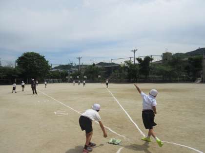 体力テストでは,立ち幅とび,反復横とび,ソフトボール投げを実施しました。みんな楽しく真剣に取り組むことができました。