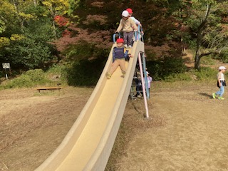 お弁当の後は、遊具で遊んでいます。
