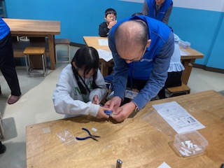 ホッチキスとペンチを駆使して工作中。