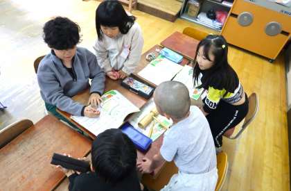 曲に合わせてグループで演奏の方法や、リズムを考えて練習しています。