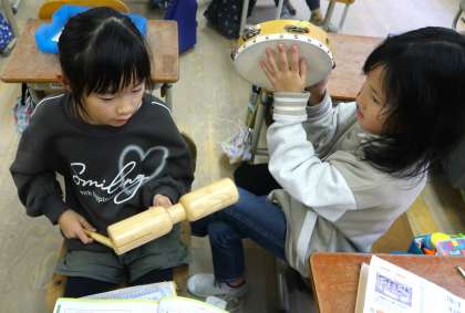 2年生 音楽科「いろいろながっきの音をさがそう」