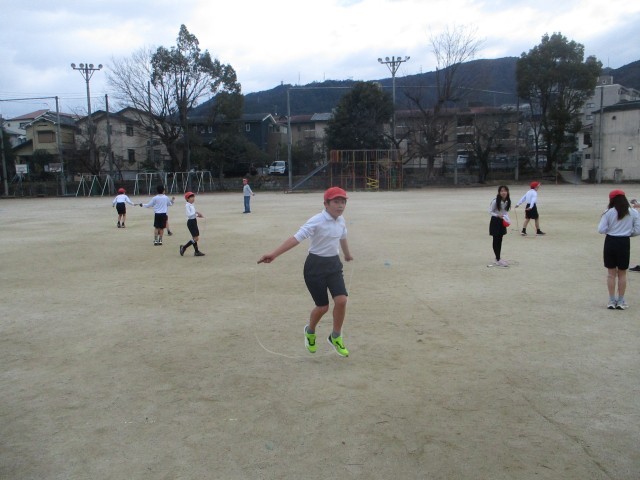 4年生最初の体育は「なわとび・ゆっくりペース走」です。マラソン大会に向けて仕上げていこうとやる気満々の人もいます。なわとびでは二重とびやあやとびなど難しい技にチャレンジしています。