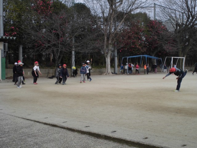 4年生の一部ではドッジボールがブームです。今は学級だけでなく低学年の子も一緒に遊んでいます。