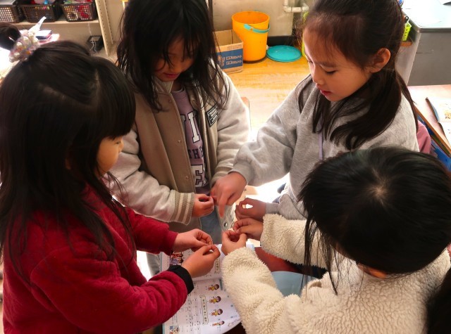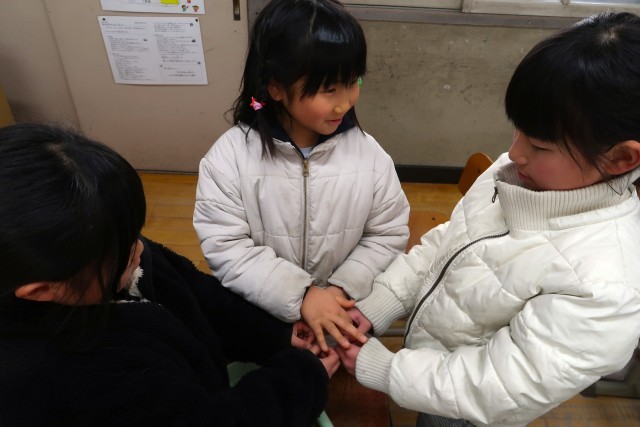 音楽では日本の「わらべうた」を体を動かしながら歌っています。