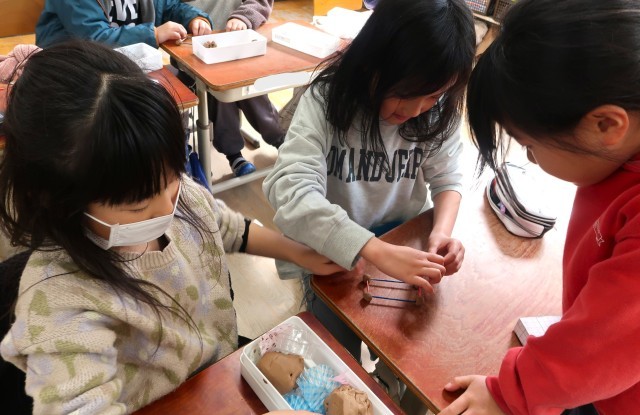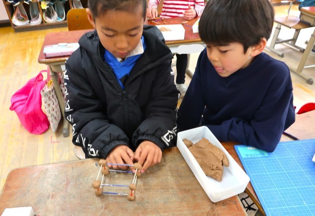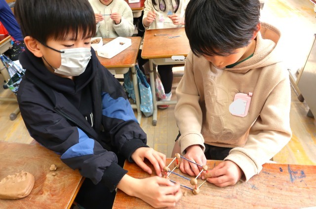 向かい合う辺の長さに気をつけて協力して組み立てました。