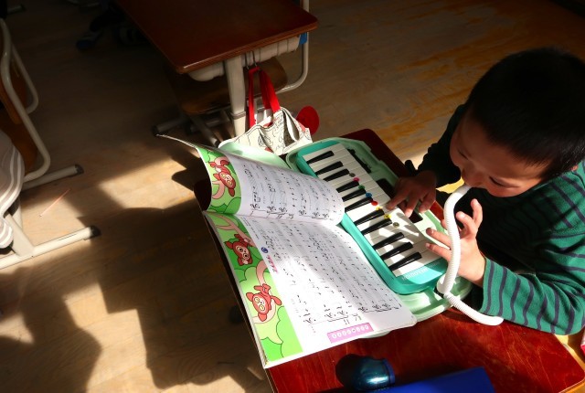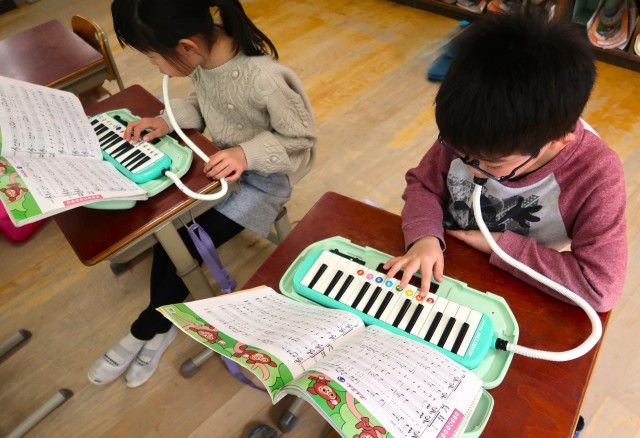 音楽科では、鍵盤ハーモニカの練習を頑張っています。