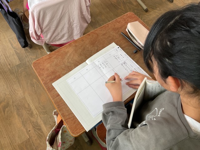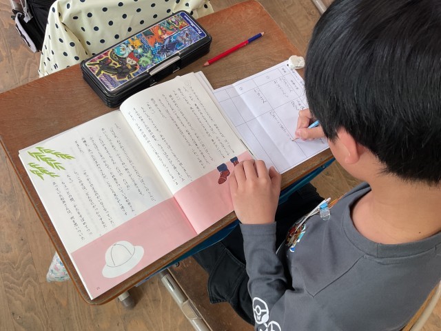 本日の国語科の学習では、「白いぼうし」の物語を4つの場面に分け、それぞれの場面の出来事について書きまとめました。