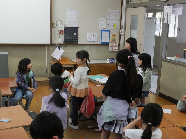 2年生の生活科では、1年生の学校案内で紹介したらいい場所について話し合いました。
