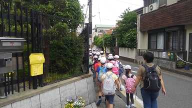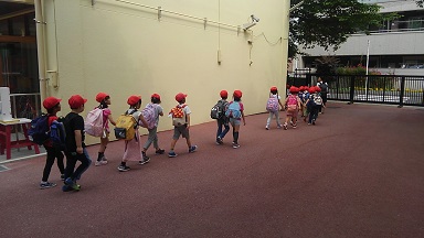 1,2,3年生の遠足です。元気に学校を出発して駅に向かいました。