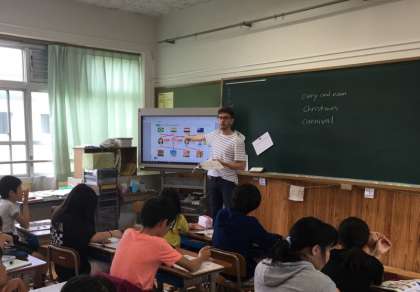 1枚目はALTのジェイソン先生との外国語活動の授業の様子です。