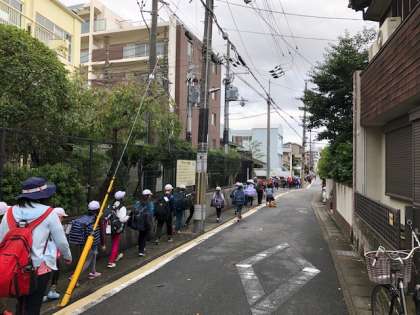 出発式を終え,4年生がみさきの家へ出発しました。台風の影響で船での移動は中止。みさきの家まですべてバスでの移動に変更します。