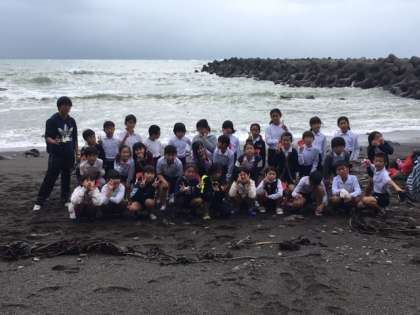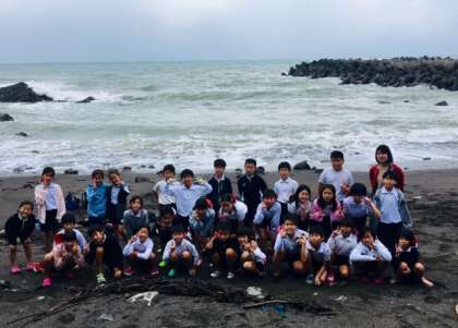 台風の直後ということもあり,波が高いので,海の中での活動は中止にしました。雨は止んでいるので,宮崎浜にお気に入りの石をさがしにきています。