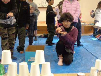 14日(火)に音羽小学校で,1回目の合同作品作りを行いました。四ノ宮祭りの射的をテーマに,今日は銃と玉と地面を作りました。絵本を見てイメージをふくらませて,それぞれが工夫して作りました。作ったまとを使って,最後に射的遊びをしました。次回は個人作品を持ちよって,発表する予定です。どんな作品ができるか楽しみですね。