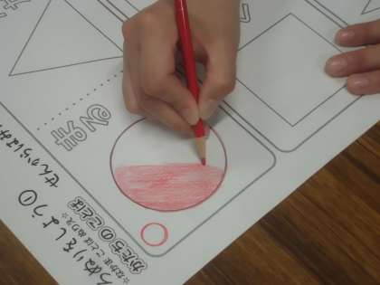 さて,今日宿題をポストに入れました。来週の宿題は,「いろぬり」です。写真のように,わくからはみ出さずに,きれいに塗るようにしましょう!同じ方向に塗るときれいに塗れますよ!初めての宿題ですが,頑張ってくださいね。