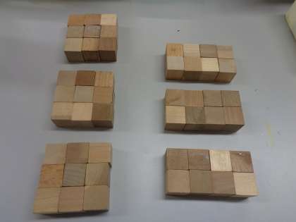 算数で今まで学習してきた「かさ」をこれからの学習では「体積」という言葉で表します。では下の2つの形では,どちらがたくさんのブロックを使っているでしょう?