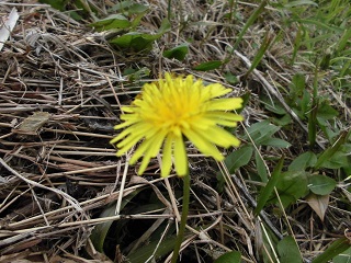 校くをあるいていると,たんぽぽを見つけました。4月に田んぼを見たときは,土だけでしたが,水が入っていて田うえがされていました。