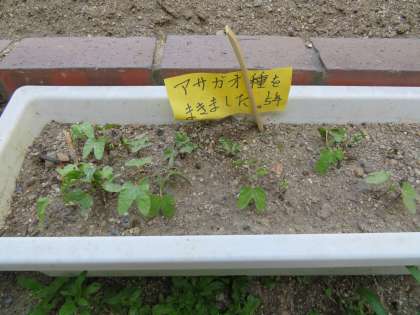 みんなと一緒に学習する日に向けて,理科の山田先生がアサガオの種をまいてくださいました。