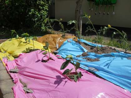あさがおの種まきとミニトマト,ピーマン,ナスの苗を植え,畑の準備ができました。