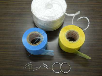 材料:クリップ4こ リング2こ ビニールロープ3色