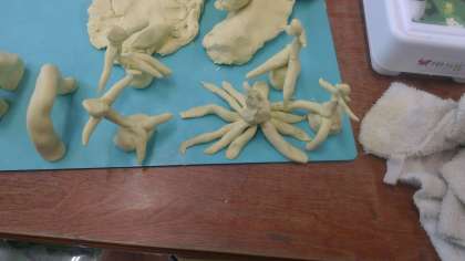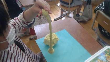 まずは粘土をやわらかくするために,粘土の体操をしました。