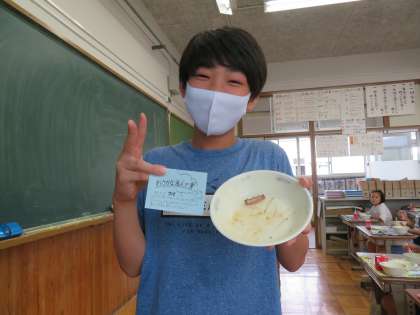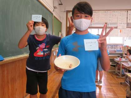 これまでの子ども達は「骨が食べにくい…」「身に骨がたくさんついている…」などと,なかなか魚の骨を上手に外して食べることができませんでした。今日は栄養教諭の井上先生が用意してくださった『おさかな名人で賞 さば賞』に向けて,どの子も丁寧にさばから骨を外し,しっかりと食べきっていました☆