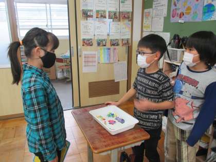 お店屋さんとお客さん役に分かれて活動します。