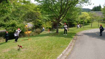 1日目午後,5年生はフライングディスクゴルフをしました。