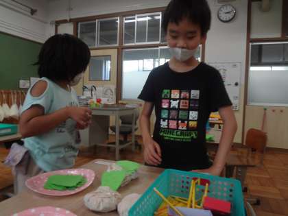 算数の時間に重さの測り方を学習しました。60g〜250gのハンバーグの模型を使って、注文通りのハンバーガーを作る学習をしました。レタスの枚数やチーズの形など、注文票を見ながら、それぞれの学習をしています。人との関わりの中で、生活に生かせる算数の学習に意欲的に取り組んでいます。