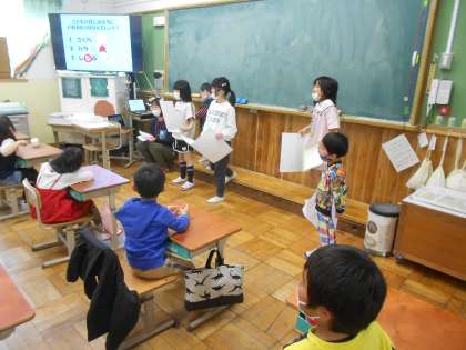 今週は,こどもの日に向けて,2年生にクイズをしたりこいのぼりを作ったりして交流しました。3年生は交流学習で1年生を迎える会に向けての歌を練習しています。雨の日には,教室で玉入れをして体を動かしました。