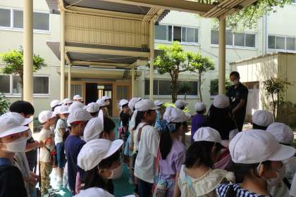 生活科の学習「まちをたんけん 大はっけん」では、校区を回りました。若宮神社や四ノ宮交番、児童館などを見て歩きました。町で出会った人には挨拶をしたり、道を渡るときには手をあげたりする素敵な姿が見られました。「田んぼに稲が植えてある。かえるの声が聞こえるね。」「お家がたくさんある道が多かったね。」などの発見もありました。また第2弾は来週です。また新しい発見ができたらいいなと思います。
