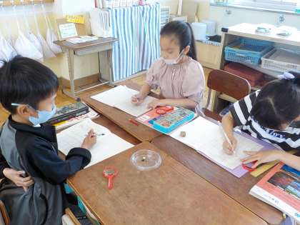理科の学習で植物の育ち方を観察します。今日は、ヒマワリ・ホウセンカ・ダイズ・オクラの種の観察をしました。来週はいよいよ種まきをします。楽しみですね。
