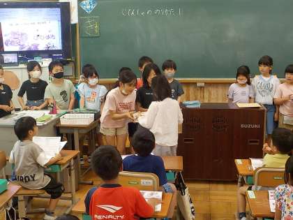 「みんなで届けに行きたい!」ということで、会が終わった後、1年生の教室にプレゼントを渡しに行きました。1年生からの「ありがとう!」の言葉に、子どもたちも満足気な表情を浮かべていました。これからもっともっと仲良くなれるといいですね。