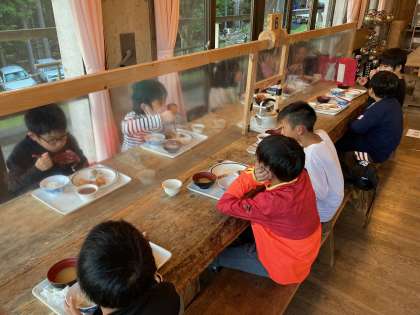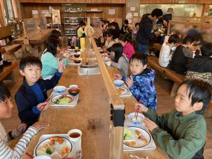 待ちに待った夕食の時間です。たくさん動いてお腹が減った子どもたち、モリモリ食べています。