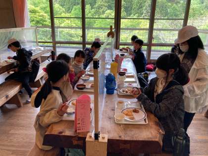 2日目の朝食です。バイキングでは自分の食べられる量を上手に盛りつけていました。夜とは違ったメニューに、目を輝かせながら選んでいます。