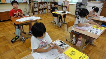 生活単元の時間に、災害の際の避難の仕方について学習しています。前回は神戸のルミナリエにこめられた願いと復興について学習しました。今回は「避難所でのくらし」について考えました。どんなことに困るのか、また自分たち子どもにどんなことができるのかを考えて話し合いました。防災リュックの作り方ではいくつかの「グッズカード」の中から、自分が必要だと思うものを考えました。