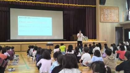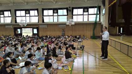 今回はまず校長先生から防災や安全に関わる話として,日曜日に行われた地域の防災訓練のことや,事故防止のために自分たちができることについての話などを聞きました。