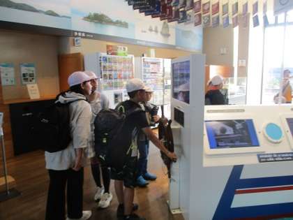 その後、琵琶湖博物館に移動しました。琵琶湖博物館では、琵琶湖に生息する生き物の水族展示や、これまでの生活の移り変わりの展示を見学しました。目の前に広がる大きな展示や実際に触れられる展示を目の前にし、楽しみながら見学していました。